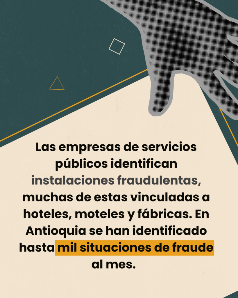 De acuerdo con reportes del sector, las empresas de servicios públicos identifican de manera constante instalaciones irregulares, muchas de ellas vinculadas a hoteles, moteles y fábricas. Solo en Antioquia se han detectado hasta mil situaciones de fraude al mes, una cifra que evidencia la magnitud del problema.