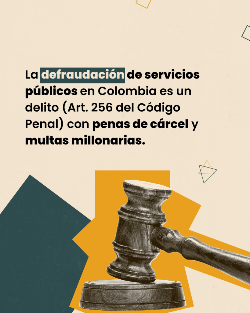 En Colombia, la defraudación de servicios públicos constituye un delito. El Artículo 256 del Código Penal establece penas de cárcel y multas millonarias para quienes incurran en estas prácticas, tanto personas naturales como empresas.