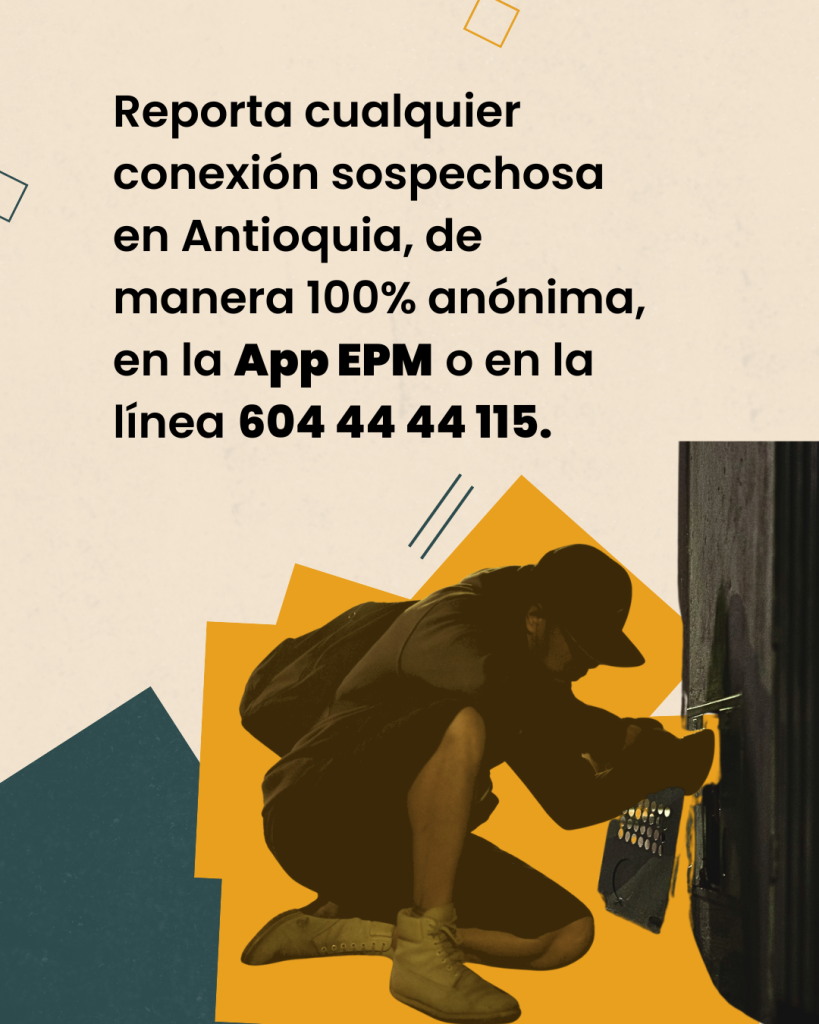 Si estás en Antioquia, puedes reportar cualquier conexión sospechosa de forma 100% anónima a través de la app EPM o en la línea 604 44 44 115.